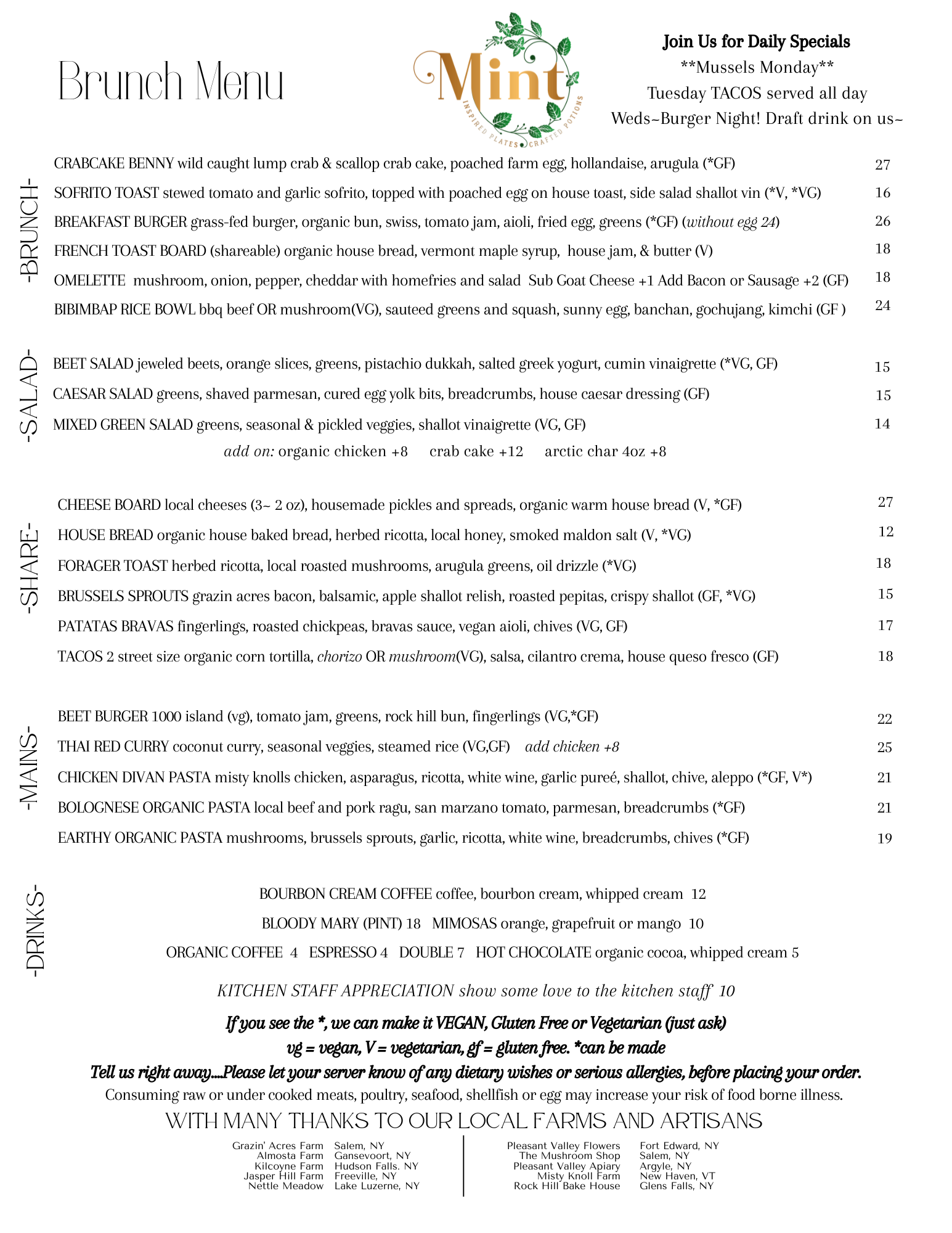 Celebrate Easter at Mint with a special holiday brunch. We’ll be opening early and serving our full brunch menu along with a few festive specials from the kitchen to make the day EGGstradelicious. Gather with family and friends and enjoy a relaxed Sunday morning around the table.